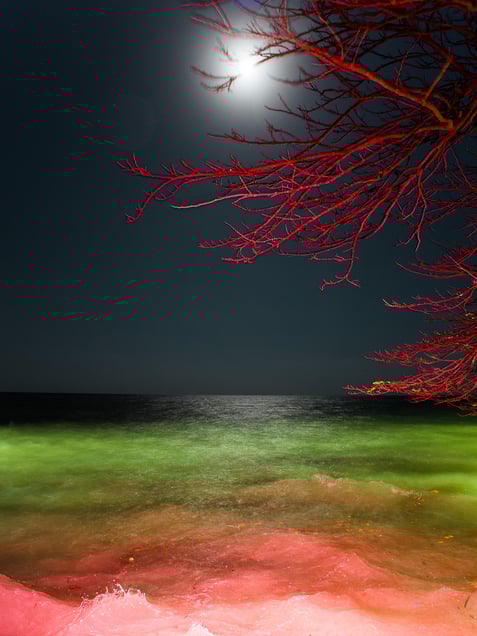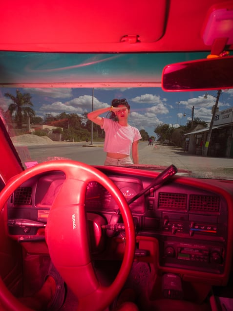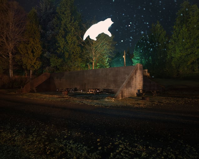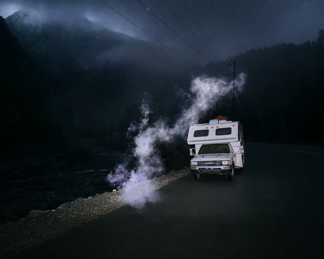 I am living in my small 21feet camper for 3 years now. I chose to transform my life in an attempt to transform my art. It was for me a radical decision. Gaining mobility favorised the emergence of situations that arise my creativity. I travel to the places that interest me the most, in between countryside and cities, industrial districts, strange parkinglots, documenting at the same time my encounters. Since then, my work became quite biographical and helped a lot to feed my curiosity. All(ish) the pictures I take are not set-up, they are spontaneous using the real flash effect and people on site. My subjects remains mostly strangers or friends that I often juxtapose to a cheesy panorama with a powerful immersive esthetic. I started experimenting with the colored gels as well giving a new dimension to the picture I create and imprinting my own presence in the image. In this serie I want to continue explore the relations between humans and their environment, the exploitation of mass tourism, the concept of private properties and manufactured landscapes. Creating totally surreal picture without the artifice of extensive retouch (only using lightroom for development). Wired to solar panel, I am totally autonomous (off the grid) in terms of electrical energy, wich allows me an incomparable liberty of movement. The campeur is truly my home, with the retouch center, I even own a toaster, wich is real luxury. My art is what allows me to sustain this way of life. If you like what I do, prints of my work can be bought online on my website.