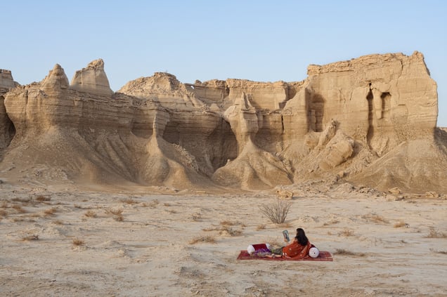 The photographer has sprinkled the soil of the land upon the surface of the desert. The horizon on this vast desert slowly flexes up and down, providing air to the people. Dashti has cast such scenes in the midst of this open desert and has fixed her own imagination upon the ground. It is as if her imagination is also snapshots of the realities of her country. The snapshots are released in bundles upon the vastness, they don’t recite stories, they whisper. The heart of the matter lies outside this contraction and that dilation. We do not see the story; we are suspended in it so that we ourselves can make the story. I do not know if Dashti’s photographs give us clues with whichto construct the story or if they lead us astray. Dashti’s “desert” is not desolate, nor is our homeland.