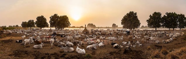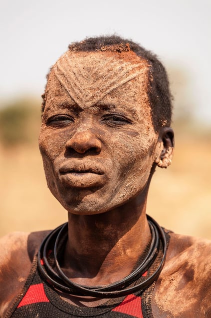 The tribes of South Sudan are among the tallest people in the world, and many Mundari men and women tower over their cows and bulls. Known for their distinctive ritual scarring of Vs on their foreheads, the Mundari have a strong tradition of wrestling and music, and they live communally – sharing everything from blankets to instruments. They depend on their cattle for survival, and will only slaughter or sell them in times of dire need.