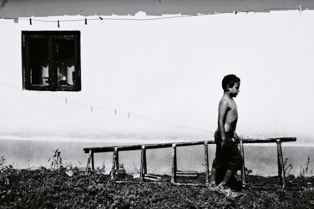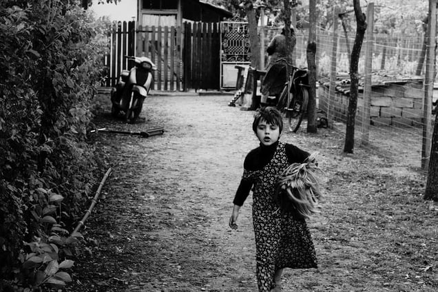 In this quiet corner of Romania, subdued by transition and aging population, Felix spends his holidays living with my Grandmother, who almost never leaves the village. His childhood is quite untouched by modern technology, and instead, Felix grows and learns through traditional avenues. Rather than spending hours staring into a tablet's glowing screen, he plays in the sand and finds joy in swimming in a small blow-up pool from the supermarket. He offers to teach me to ride the bike and finds himself mesmerized by the Milky Way in warm summer nights, while people from the village fill the dusty alleys on their way home from yet another evening of drinking with their neighbors.