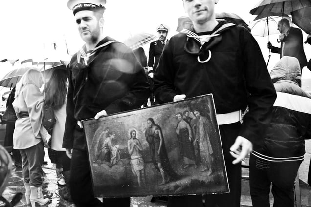 “The Epiphany ceremony has its roots to ancient Greek customs. The ancient Athenians, for example, had a ceremony known as "Wash". During this ceremony the believers procession carried the sacred statue of goddess Athena to the Faliro coast, nearby Athens, where they washed it using salty sea water. They believed that this way they were cleaning it from the dirt and were renewing their sacred forces.