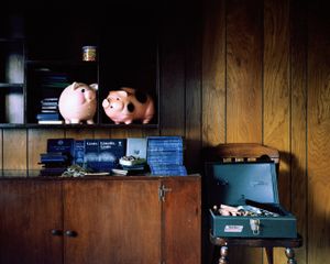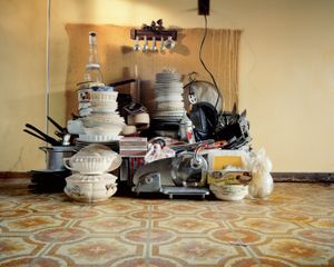 By rearranging the objects that filled his home into pictorial compositions to assert her own presence as an artist, Tese authors a chronicle of a life as expressed by simple objects, ranging from those unique to the individual subject, such as a collection of paperweights or newspaper clippings including those about Tese herself as a child, to pedestrian items such as shoes or pots and pans.