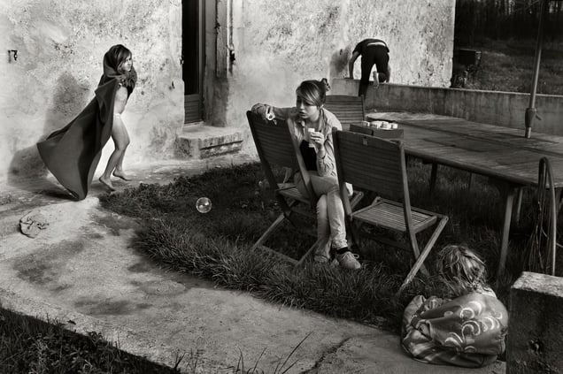 I’m a father of six. Through my photographic work I celebrate and document my family life : a life on the edge of the world, where intemporality and the universality of childhood meet. Day to day I create a family album that constitues a legacy that I will pass on to my children. My work reflects our way of life, revolving around their childhood. My photographs will be the testimony of that. In a way my approach can be considered similar to the one of an ethnologist. Though my work is deeply personal, it is also accessible, addressing human nature and allowing the viewer to enter my world and reflect on their own childhoods. Fed everyday and shared with the world via the internet, my photographic production has become a mean of communication, leading to a questionning about freedom, nudity, being and having.