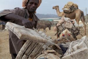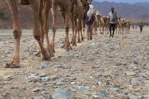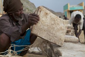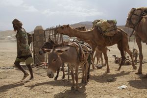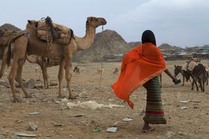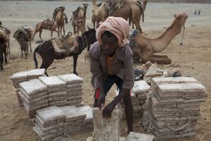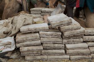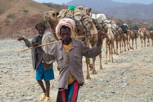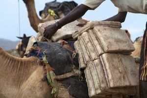 The Danakil Depression, specifically the area surrounding Lake Afdera, is the place where the majority of the salt production in Ethiopia is found. The lake yields more than 1.3 million tons of salt annually and around 750 officially registered salt miners work in this area. Teams of Muslim Afar and Christian Tigrayans from the Ethiopian highlands gather daily to mine the salt and transport it by camels and donkyes to a small town called Berahile, a walk through the desert that can take up to three days. The salt miners in the Danakil depression work under very tough working conditions where temperatures hardly drop below 50-60º. In the past, the salt blocks - called amolé - were used all over Ethiopia as money. Although cash has replaced the salt, the trade itself remains the main livelihood of the Ethiopian Afar. They guard and manage the “white gold” as their greatest treasure.